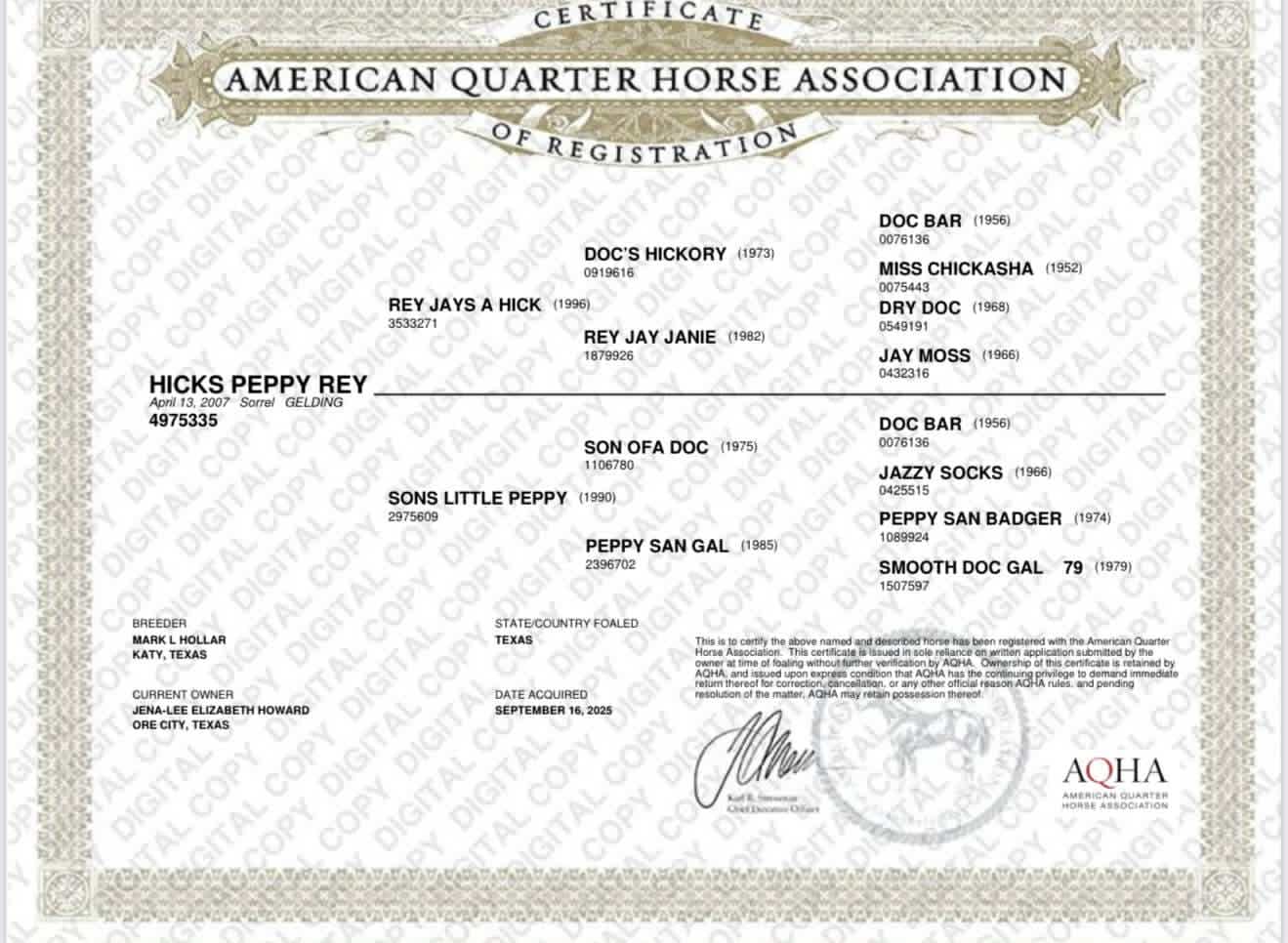 | Breed | Quarter Horse |