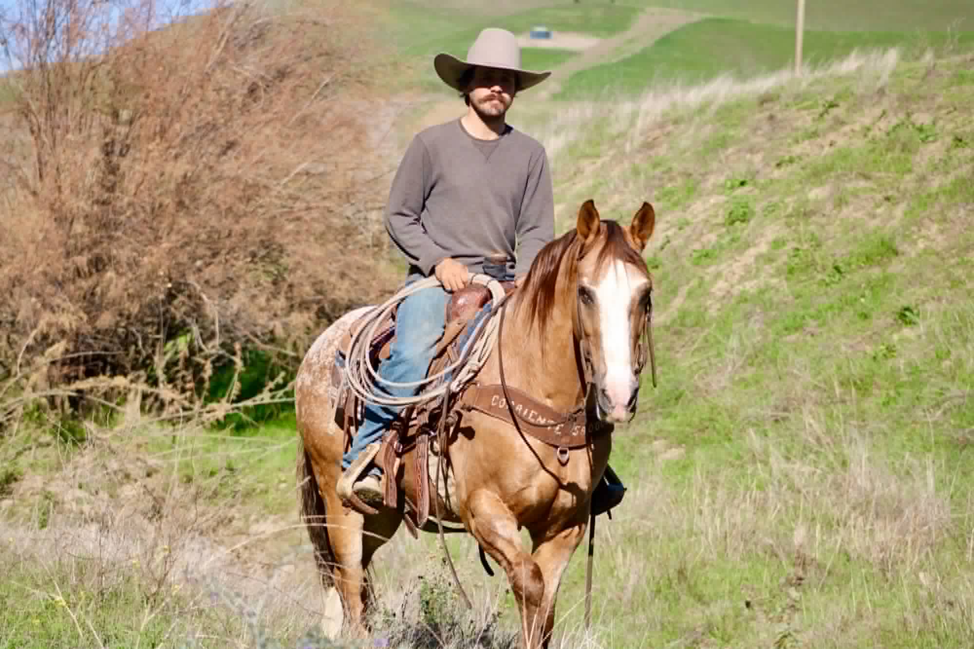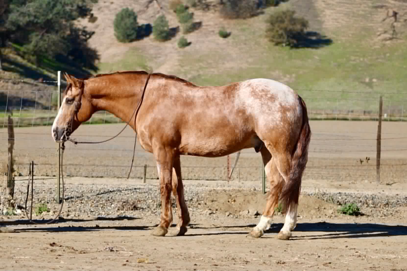 And he’s a cool ranch horse to the core. Woody has branded and worked cattle, and he loves it — the kind that stays handy, pays attention, and acts like he’s proud of his job. He’s been started on the heeling and enjoys cow work, with a willing attitude that makes him fun to ride and easy to keep improving.