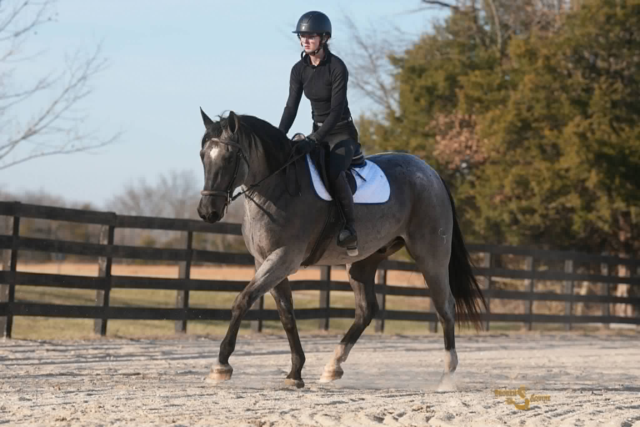 In the arena, Atticus will do any job that’s asked of him. He has three extremely smooth gaits that are adjustable and comfortable. He has great transitions, stops, and an easy turnaround. Atticus is just an all around easy horse to ride and enjoy. He moves well off leg pressure, has an easy neck rein, and is seamless between disciplines. In English tack; he will ride on a loose rein or in the bridle, schools first level tests, and has nice leg yields, side passes, and pivots. Under western tack, Atticus is one handed, rides correctly, and lopes balanced circles.