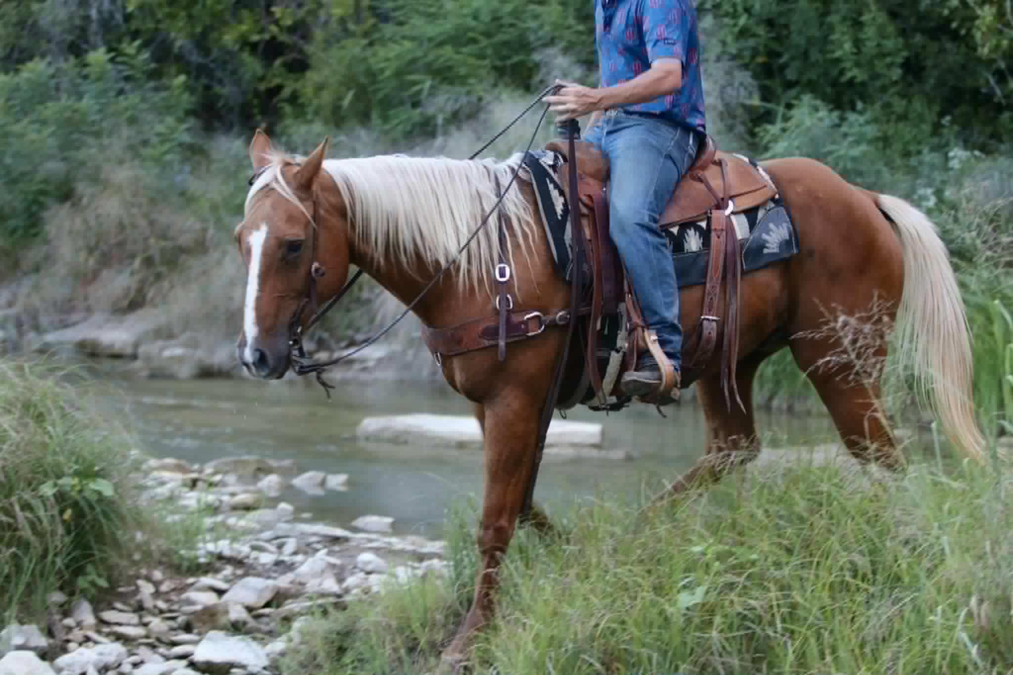 Meet Titan, a 12-year-old palomino gelding standing 15.1 hands tall and every bit as handsome as he is fun to ride. He’s the kind of horse that makes you want to saddle up and go, whether it’s for a relaxing evening ride or a full day out on the trails. Out on the trails, Titan really shines. He’s confident, surefooted, and happy to lead or follow. He handles new country with ease, crosses obstacles willingly, and rides out alone or in a group. He’s the type you can trust to take care of you while still giving you that fun, forward ride that makes every trip enjoyable. Titan is a well-rounded, versatile gelding with plenty of life in him. In the arena, he rides around soft and responsive. He’s been rode English as well and makes it super fun! If you’re looking for a good-minded, flashy gelding who’s safe, reliable, and fun, Titan is the total package. He’s a true all-around partner with plenty of heart and the kind of looks that will turn heads wherever he goes. We are located in Lipan Texas but have reputable haulers that go all over the country, including Hawaii and Canada. Give me a call or text and I’d be happy to answer any questions! Contact Makenna Hartzell 817-659-3778 with any questions.